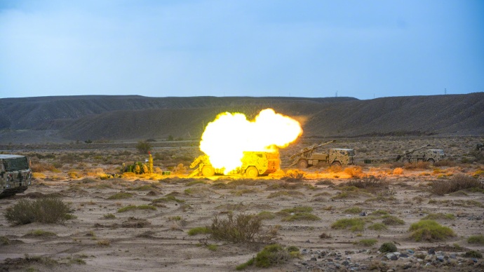 在广袤的榴炮大漠戈壁中,炮声此起彼伏。分队以测试和提升部队的实弹射击综合战斗能力。